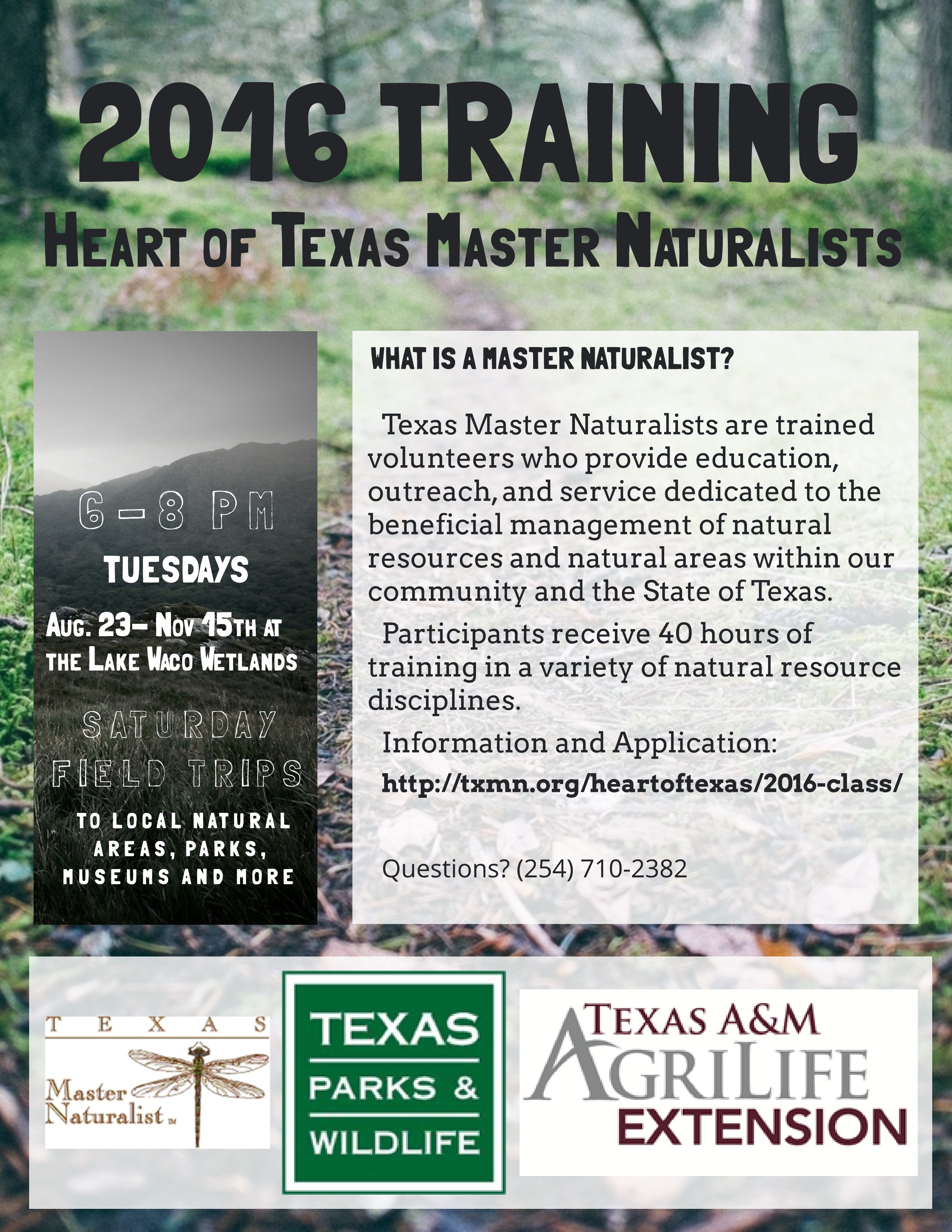 After being instructed to do so by the leadership at the Prairie Oaks chapter, register with TPWD to take the TMN volunteer certification training with the Prairie Oaks Master Naturalists.